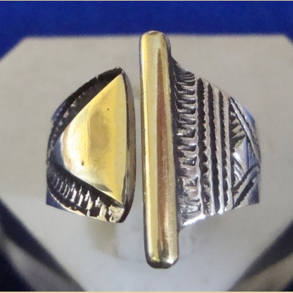 Bijou touareg, bague en argent et laiton, motifs gravés