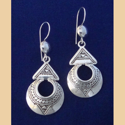 Bijou touareg, boucle d’oreille en argent, motifs gravés