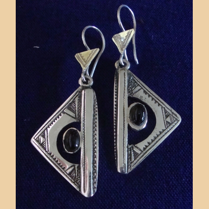 Bijou touareg, boucles d’oreille en argent, motifs gravés
