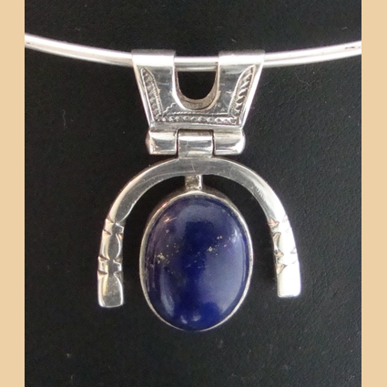 Bijou touareg, pendentif en argent, motifs gravés, cabochon lapis-lazuli serti